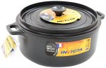 INVICTA“ sein (der link für auf die englisch-sprachige Seite!). Die Firma produziert (neben vielen anderen Artikeln) absolut hochwertige und robuste Schmortöpfe aus emailliertem Gußeisen. Und das zu einem immer noch mehr als erschwinglichen Preis. Besonders wenn man bedenkt, wie lange so ein massiver Schmortopf aus Gußeisen benutzt werden kann. Bei richtigem Gebrauch (was nicht schwierig ist) kann er im Grunde von einer Generation an die nächste weitergegeben werden.